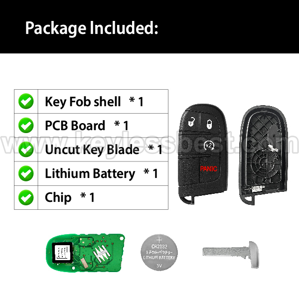*Die detaillierten Informationen zu diesem schlüssellosen Fernbedienungsschlüssel für Chrysler von 2017-2024 sind wie folgt. Bitte bestätigen Sie, dass die folgenden Details mit Ihrem Fahrzeug übereinstimmen, bevor Sie bestellen: FCC ID, Teilenummer, Baujahr, IC, Frequenz, Chip und Tasten.