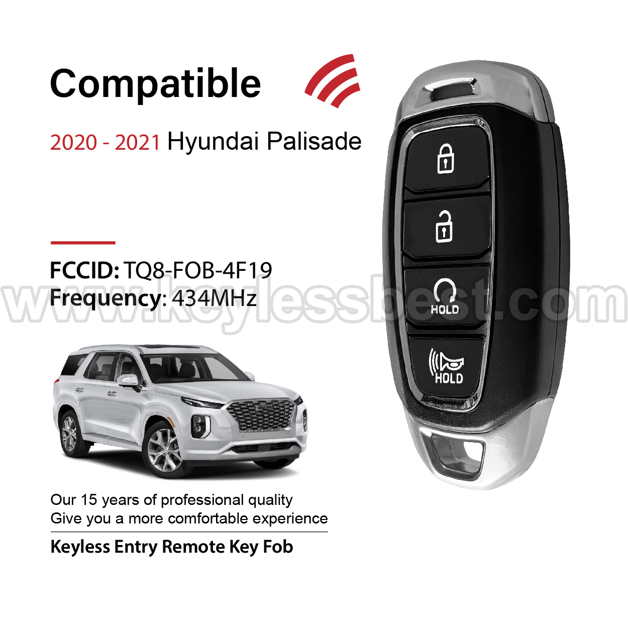 2020-2021 Hyundai Palisade / 4-Tasten Schlüsselloser Zugang Fernbedienung / TQ8-FOB-4F19 / PN: 95440-S8310