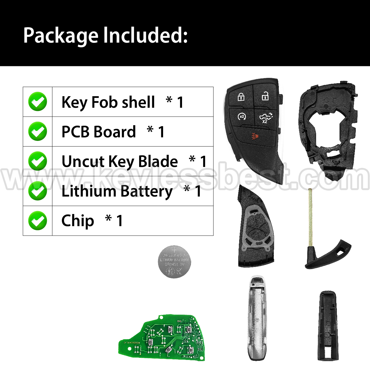 - Le prix concerne une télécommande d'entrée sans clé de remplacement complète, clé d'urgence incluse.