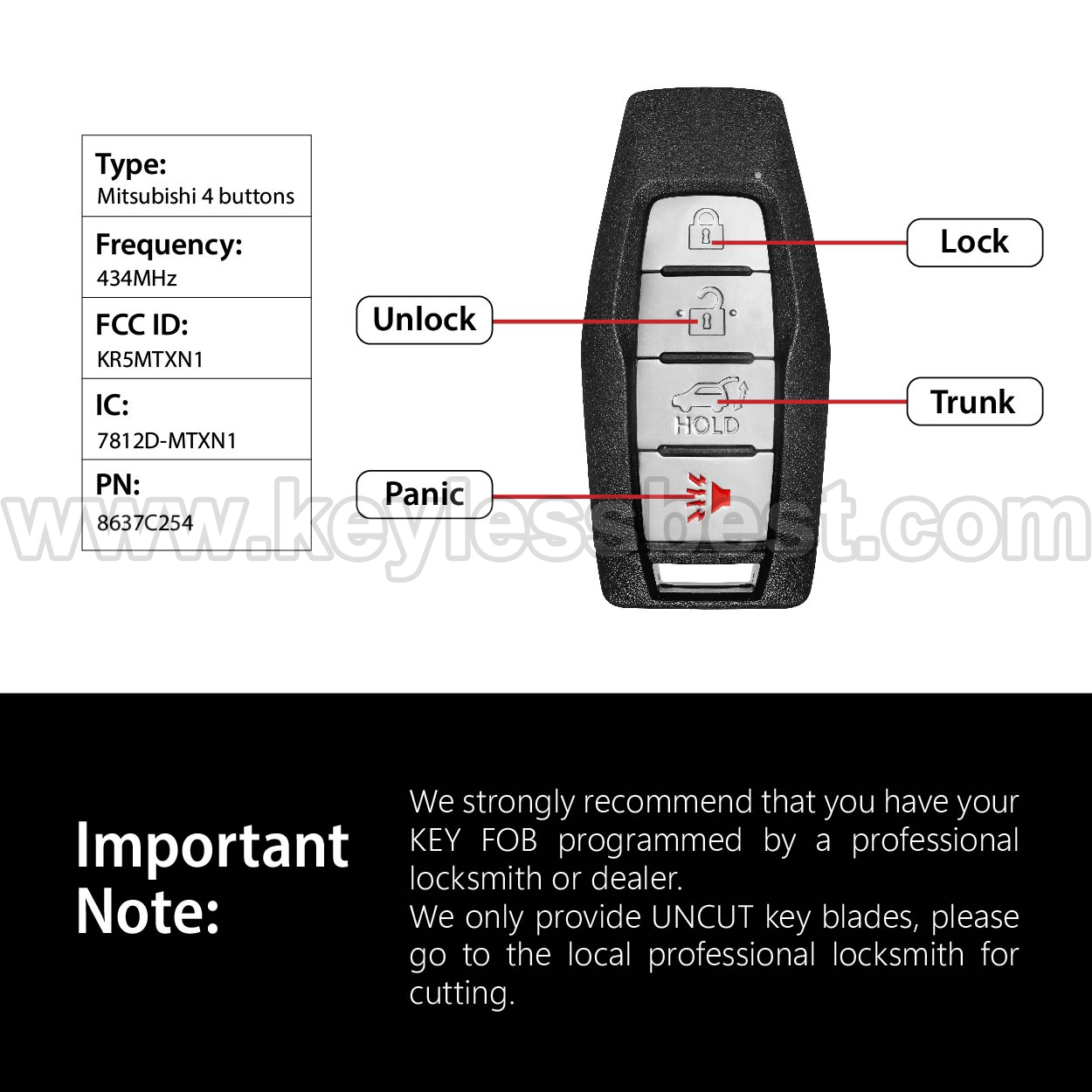 Clé de voiture Mitsubishi 2021-2024 KR5MTXN1 434MHz pour Keylessbest