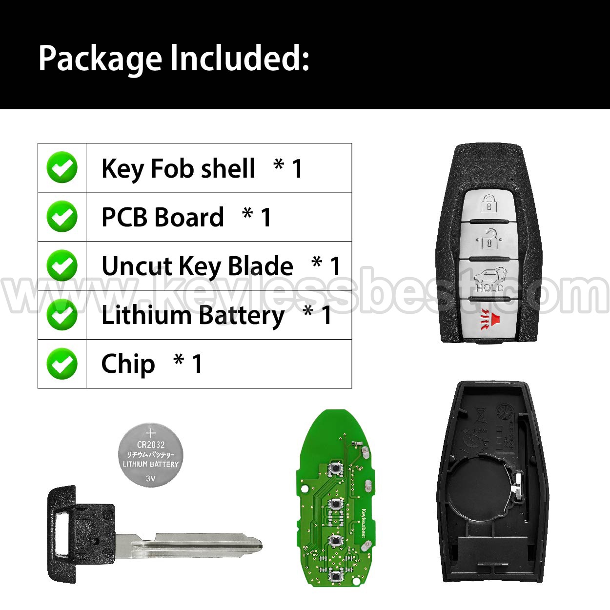 - Le prix concerne une télécommande d'entrée sans clé de remplacement complète, clé d'urgence incluse.
