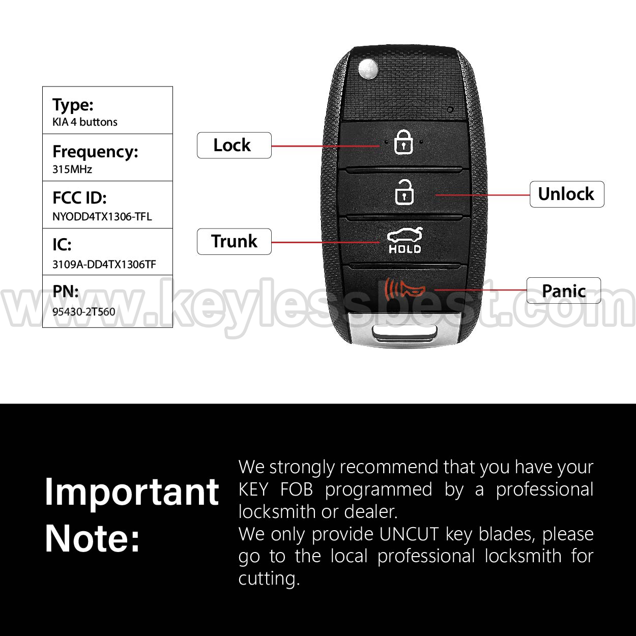 - Non tagliamo né programmiamo la chiave remota. Inoltre, per i prezzi, si prega di contattare il fabbro locale o il rivenditore.