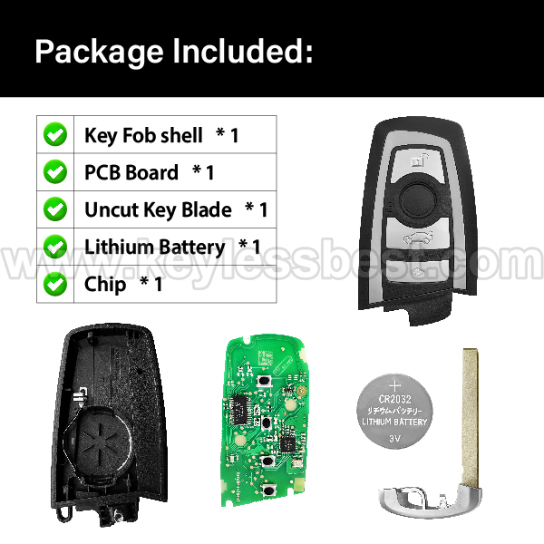 - De vervanging van de BMW smart keyless entry afstandsbediening voor 2009 – 2016 – zonder logo, met een ongesneden noodsleutel inbegrepen.