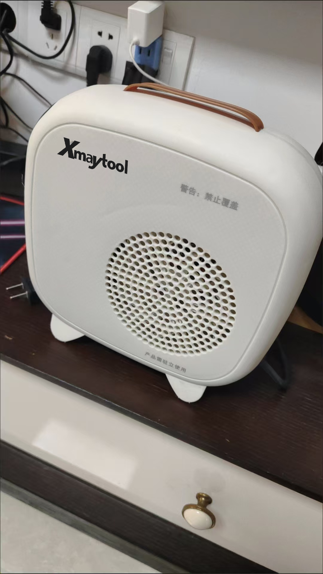 1. Place the heater on a flat, stable surface (such as a desk, floor, or shelf) and ensure there is at least 30cm of space around it (do not place it near curtains, furniture, or other flammable objects).