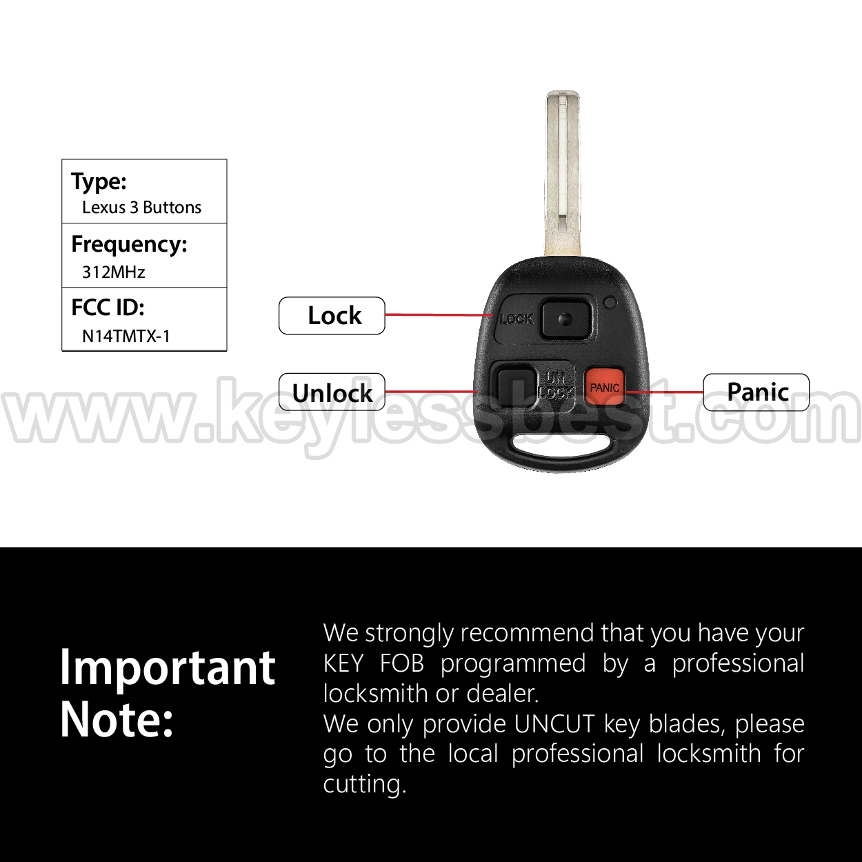 *The detailed information of this 1999-2003 Lexus keyless remote fob is as follows. Please confirm the following details match your vehicle before ordering: FCC ID , Part Number , Year Model , IC , Frequency, Chip, and Buttons.