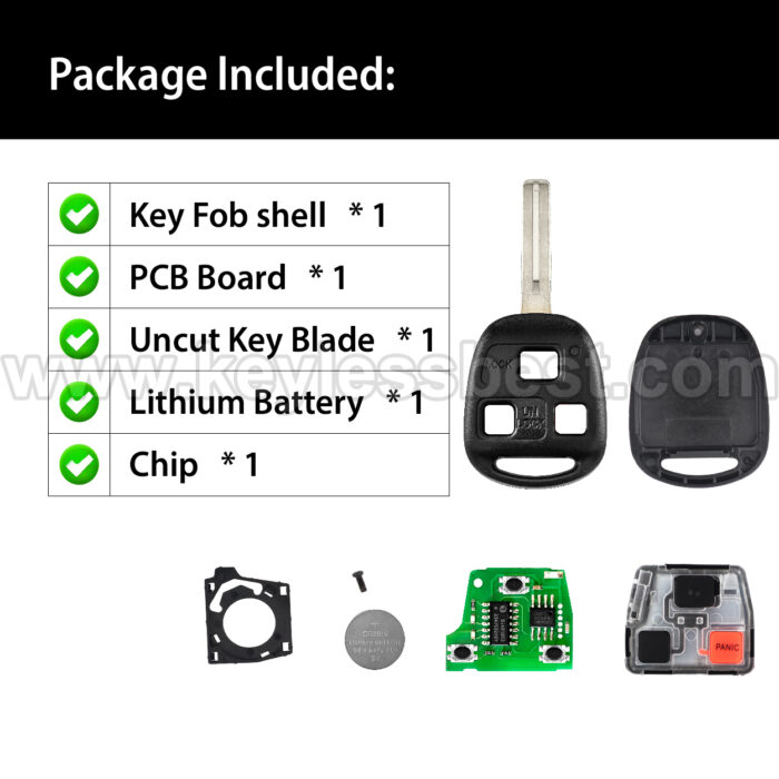 - The 1999-2003 Lexus smart keyless entry fob replacement – without a logo, with an uncut emergency insert key included.