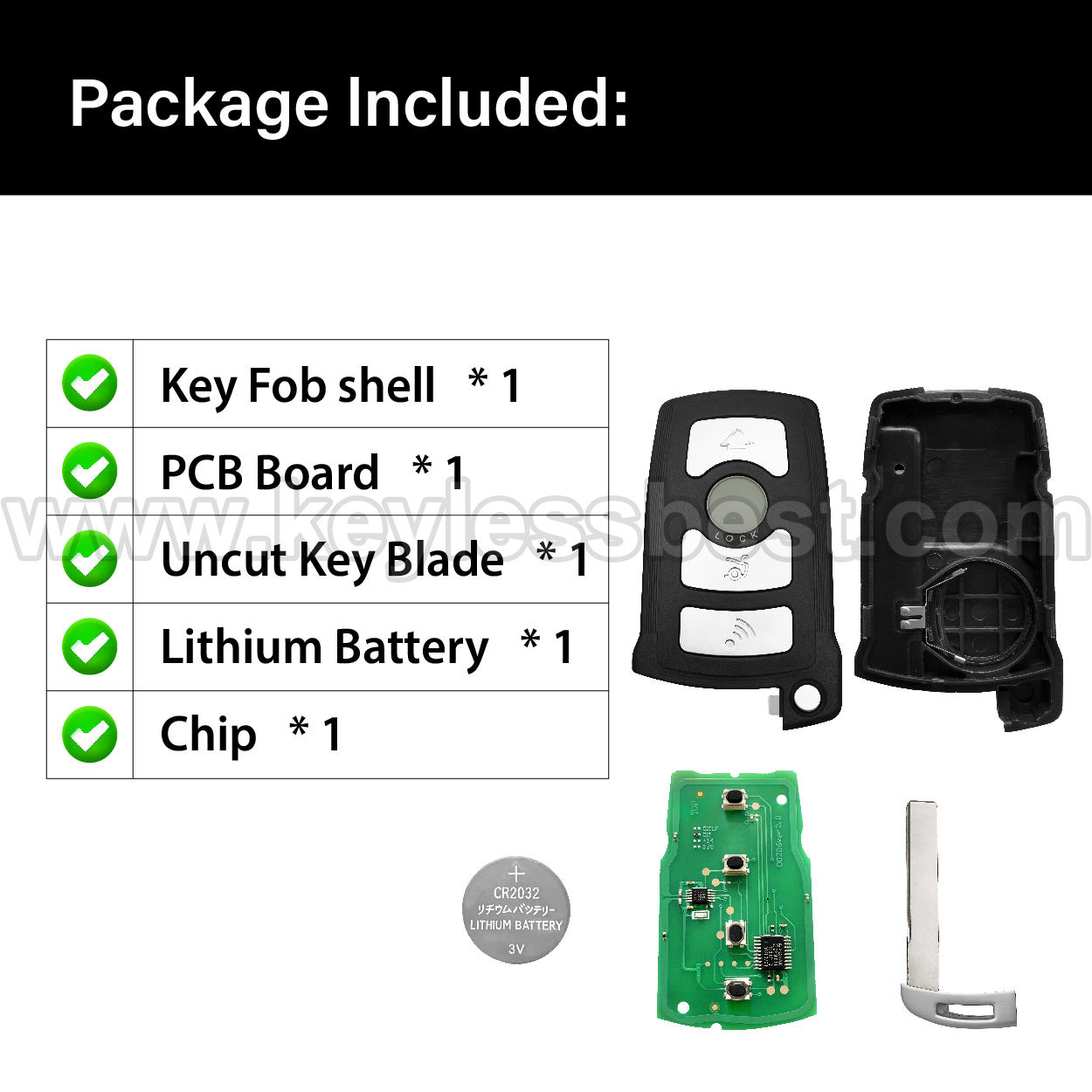 • The 2002-2008 BMW smart keyless entry fob replacement – without a logo, with an uncut emergency  insert  key included.