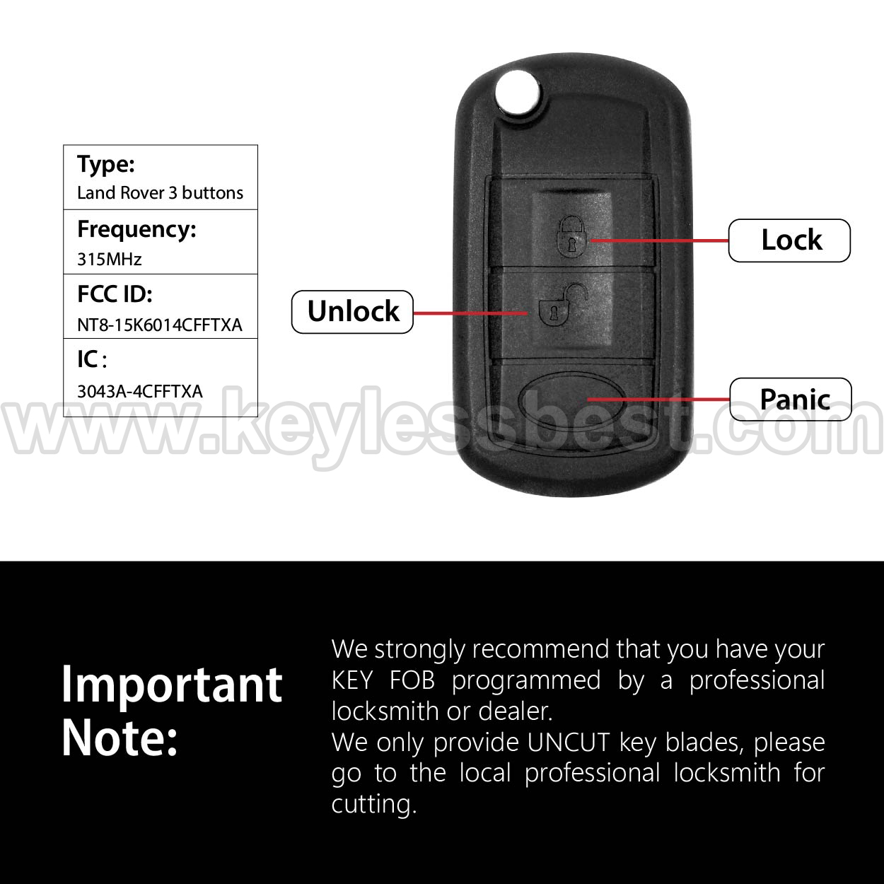 *The detailed information of this 2005-2011 Land Rover keyless remote fob is as follows. Please confirm the following details match your vehicle before ordering: FCC ID , Part Number , Year Model ,IC, Frequency, Chip, and Buttons.