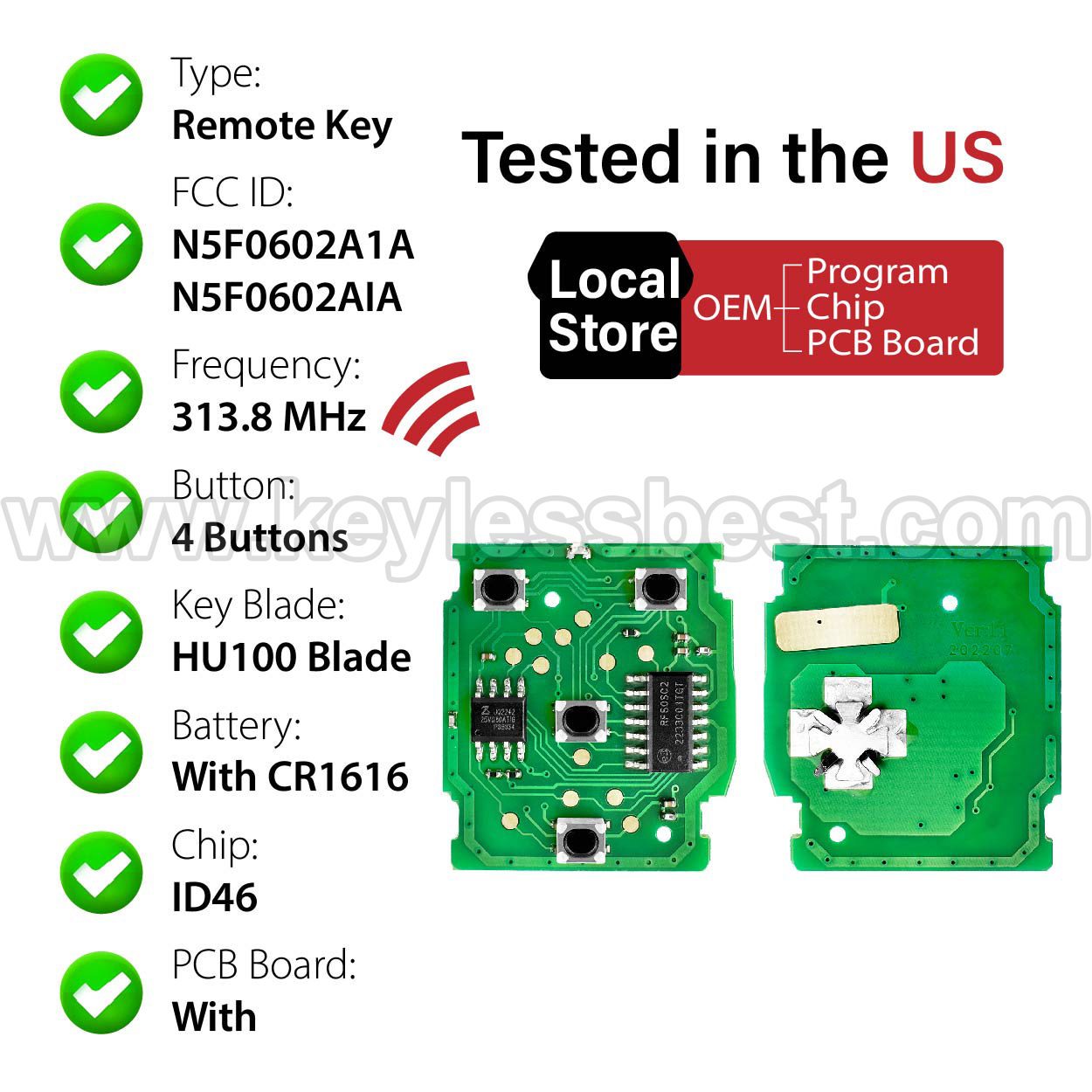 *The detailed information of this 2007 – 2013 Acura keyless remote fob is as follows. Please confirm the following details match your vehicle before ordering: FCC ID , Part Number , Year Model , IC , Frequency, Chip, and Buttons.