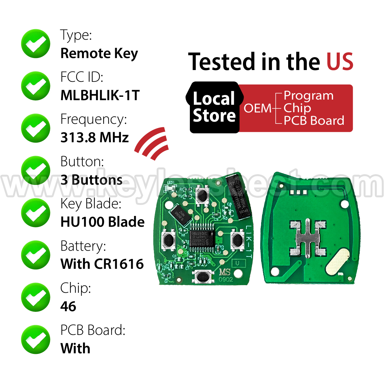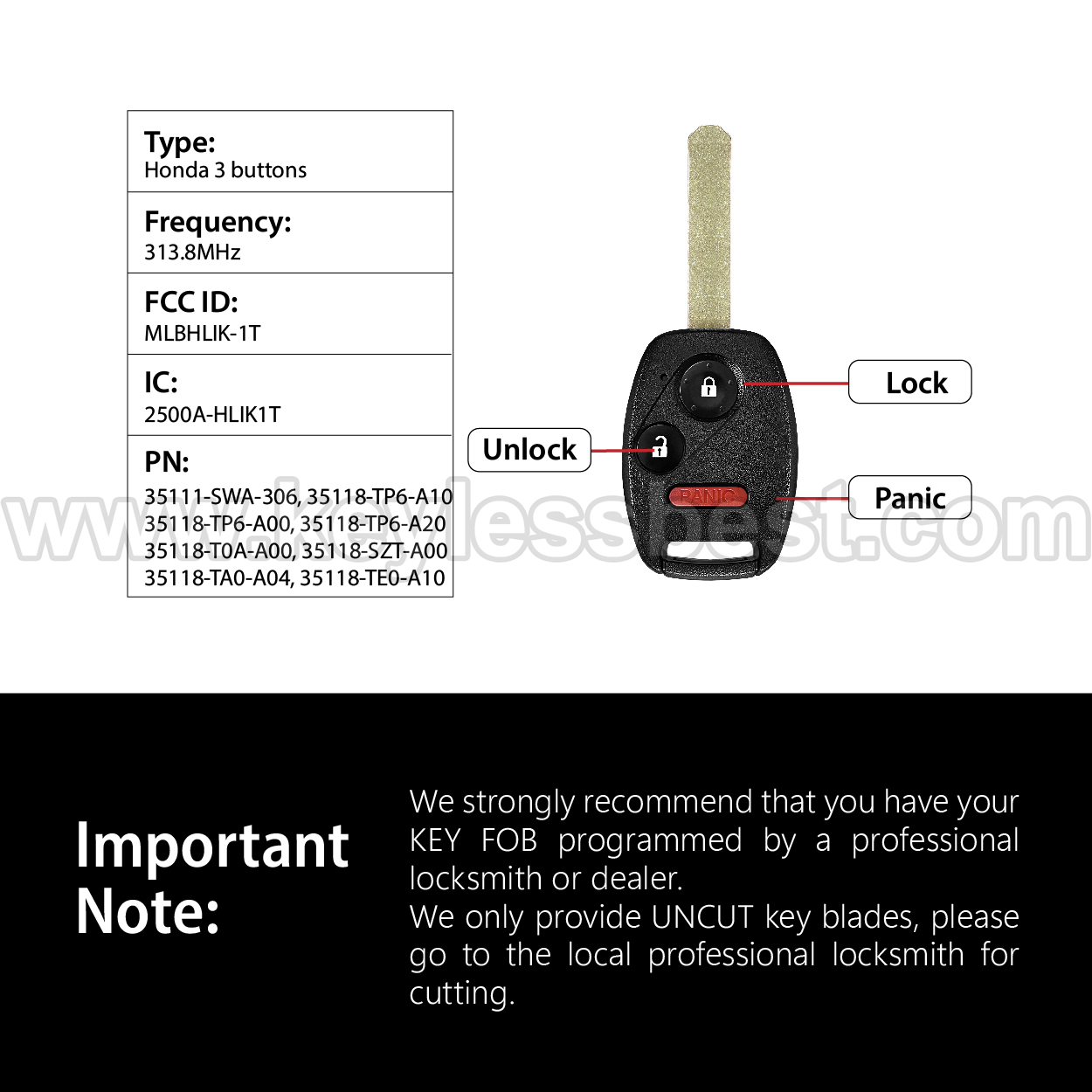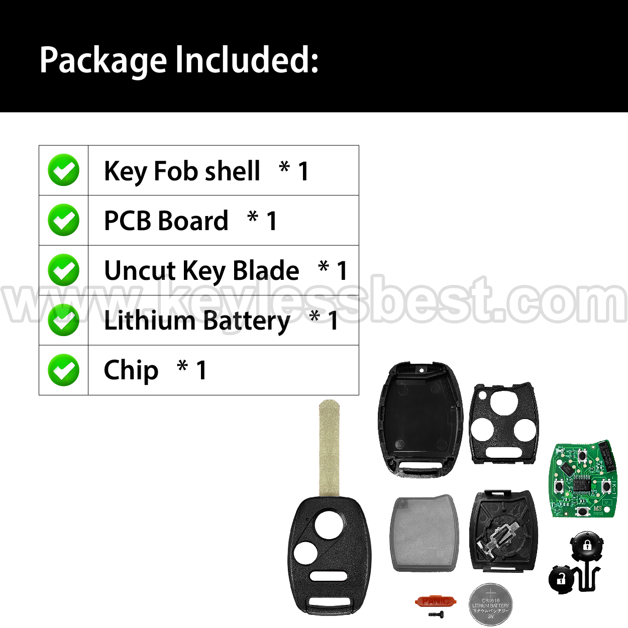 *The detailed information of this 2007-2015 Honda keyless remote fob is as follows. Please confirm the following details match your vehicle before ordering: FCC ID , Part Number , Year Model ,IC, Frequency, Chip, and Buttons.