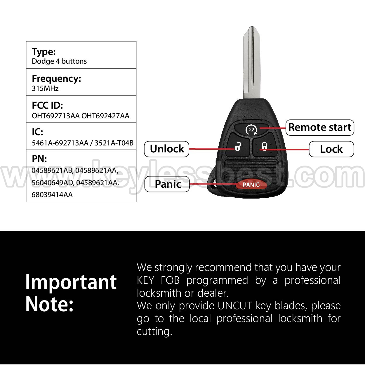 *The detailed information of this 2007 – 2018 Jeep Dodge Chrysler keyless remote fob is as follows. Please confirm the following details match your vehicle before ordering: FCC ID , Part Number , Year Model , IC , Frequency, Chip, and Buttons.