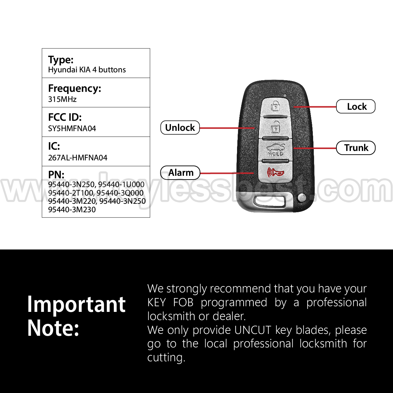 - Therefore, we strongly recommend that you have your KEY FOB programmed by a professional locksmith or dealer.