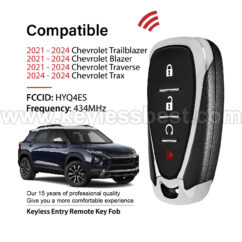 - The 2010-2015 Cadillac smart keyless entry fob replacement – without a logo, with an uncut emergency insert key included.