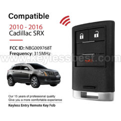 - The 2010-2015 Cadillac smart keyless entry fob replacement – without a logo, with an uncut emergency insert key included.