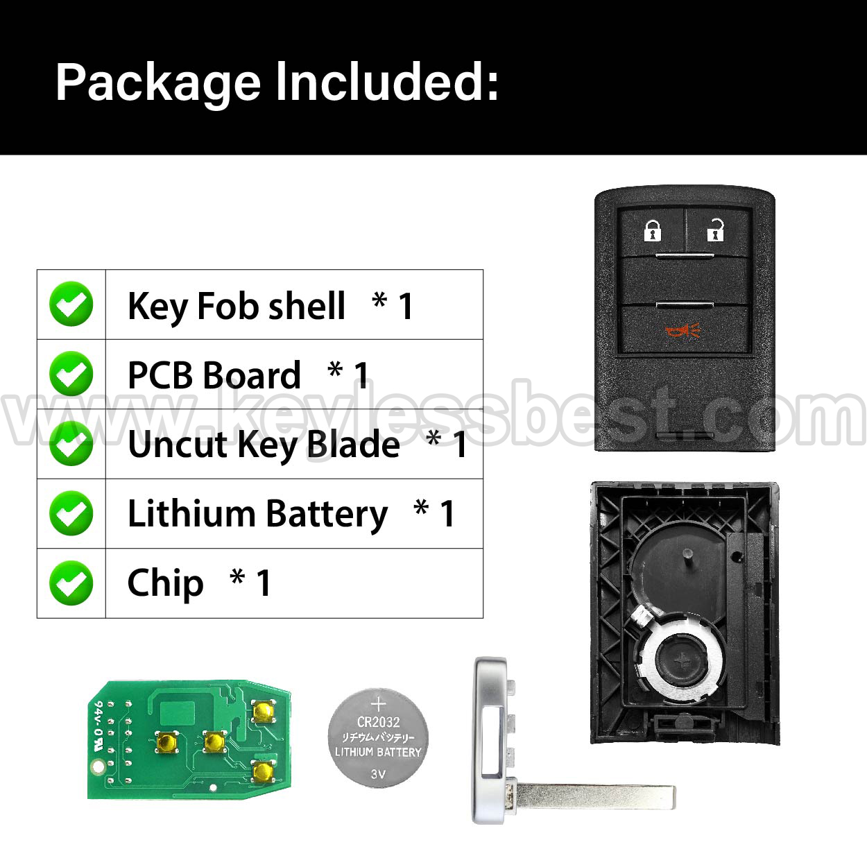 *The detailed information of this 2010-2016 Cadillac keyless remote fob is as follows. Please confirm the following details match your vehicle before ordering: FCC ID , Part Number , Year Model ,IC, Frequency, Chip, and Buttons.