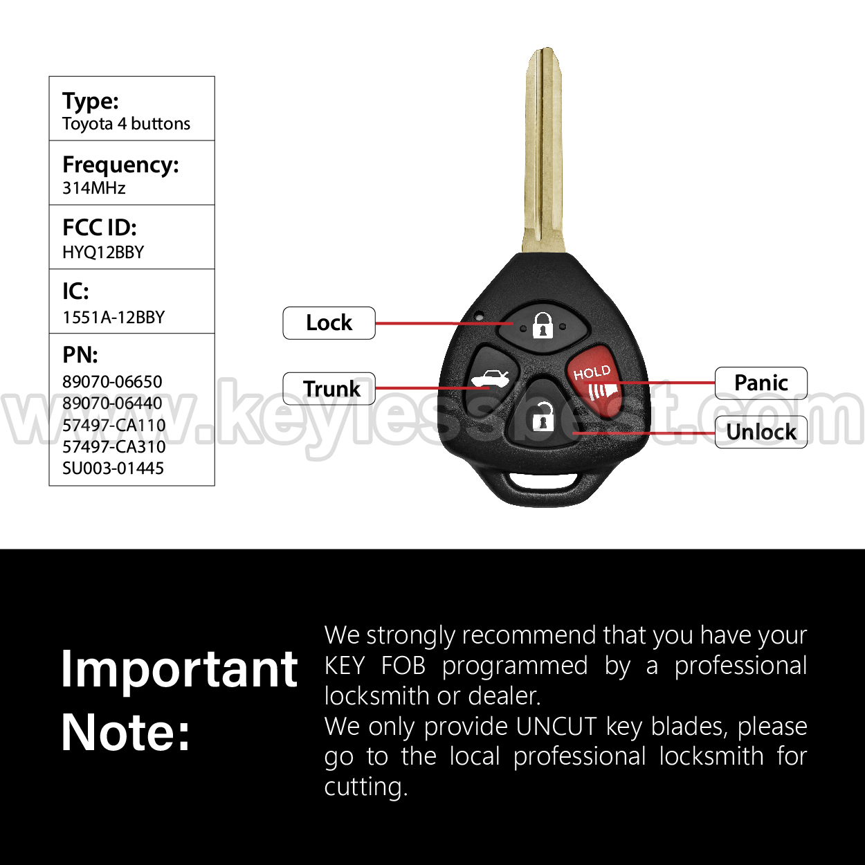 *The detailed information of this 2010-2020 Toyota Subaru Scion keyless remote fob is as follows. Please confirm the following details match your vehicle before ordering: FCC ID , Part Number , Year Model ,IC, Frequency, Chip, and Buttons.
