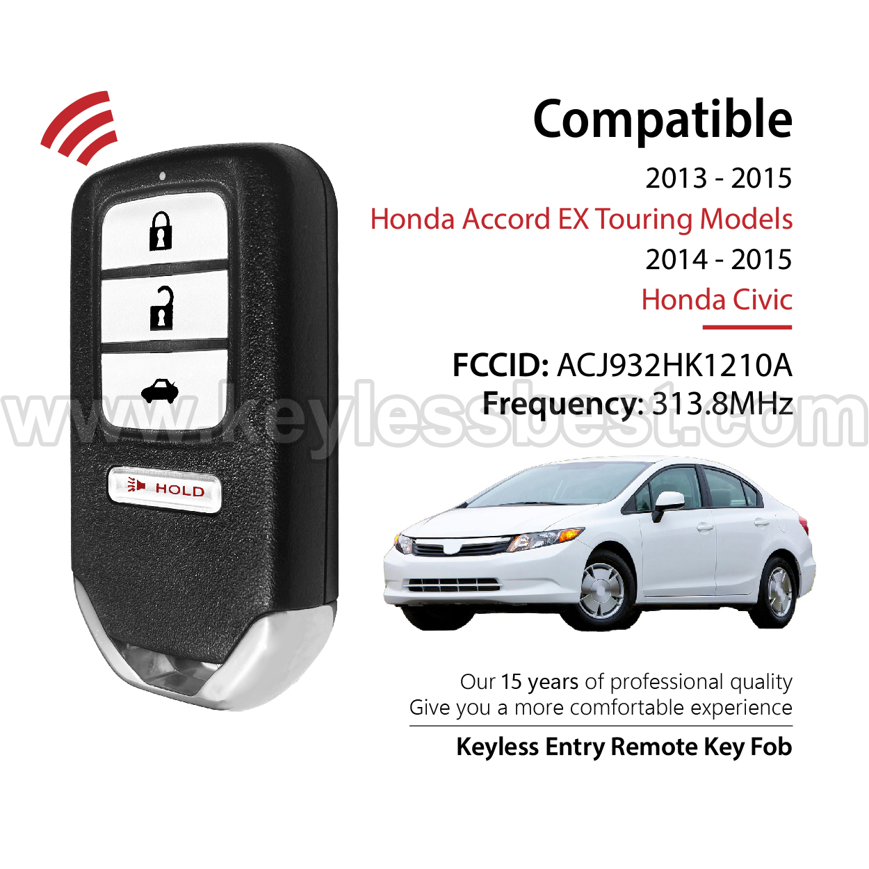 - The 2013-2015 Honda smart keyless entry fob replacement – without a logo, with an uncut emergency insert key included.