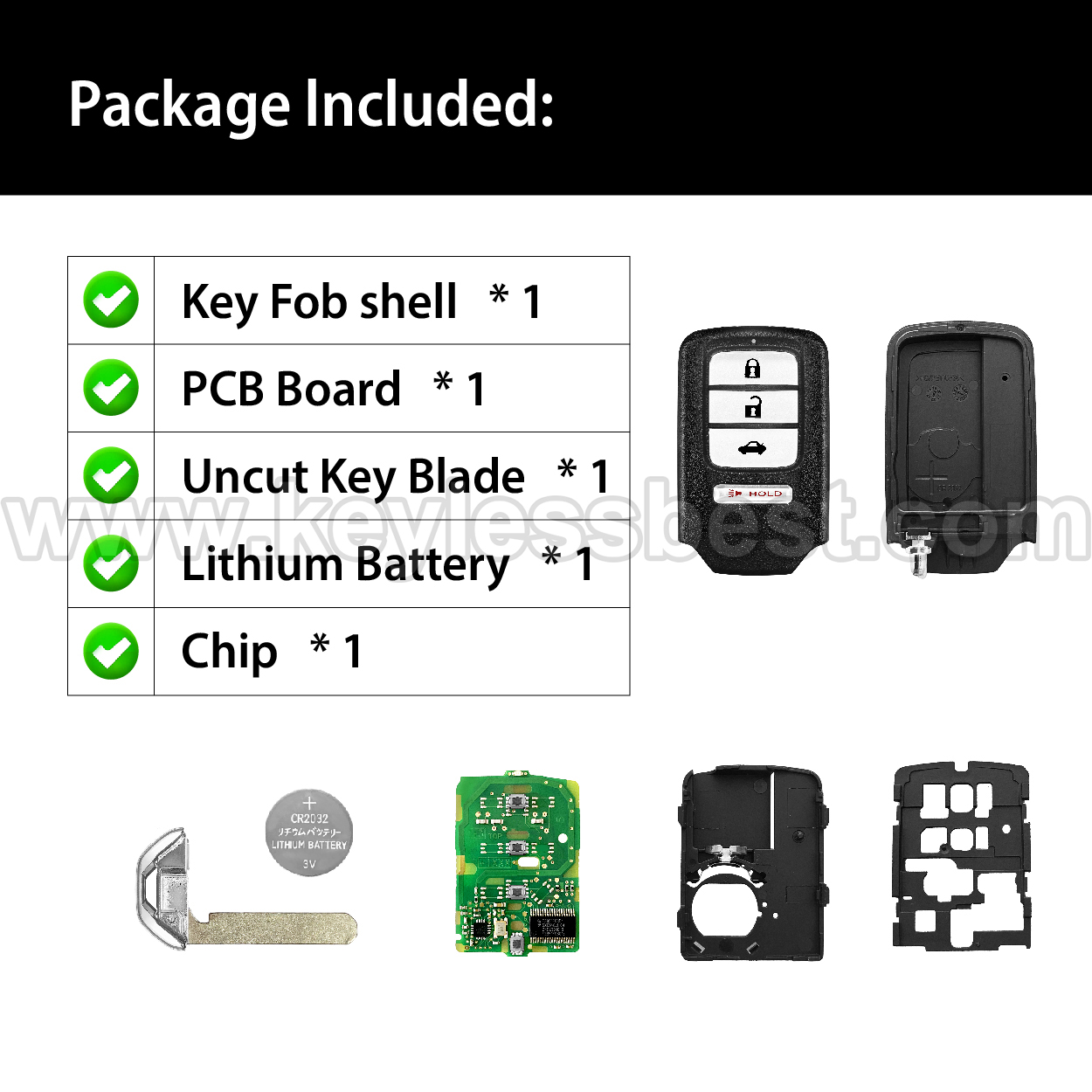 *The detailed information of this 2013-2015 Honda keyless remote fob is as follows. Please confirm the following details match your vehicle before ordering: FCC ID , Part Number , Year Model ,IC, Frequency, Chip, and Buttons.
