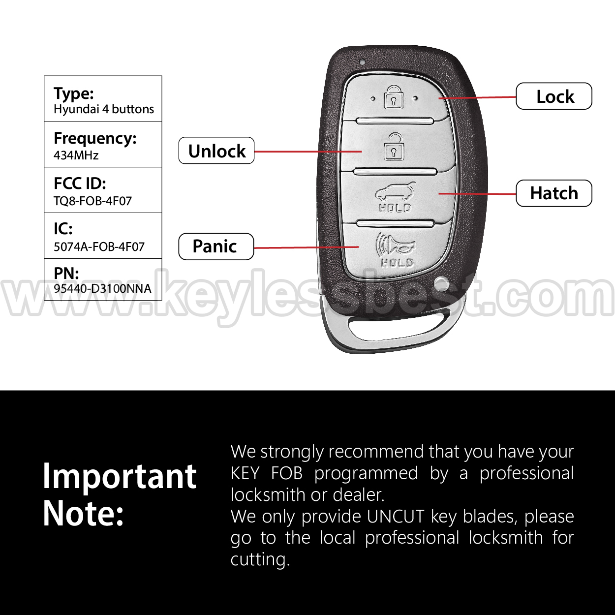 - Therefore, we strongly recommend that you have your KEY FOB programmed by a professional locksmith or dealer.