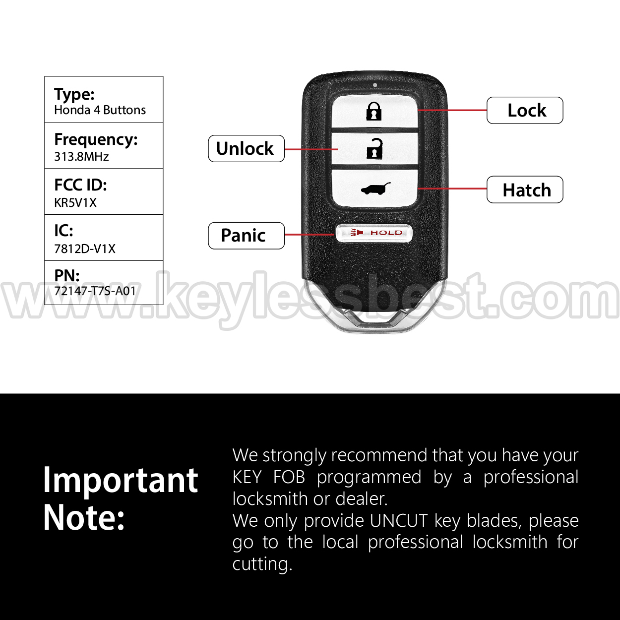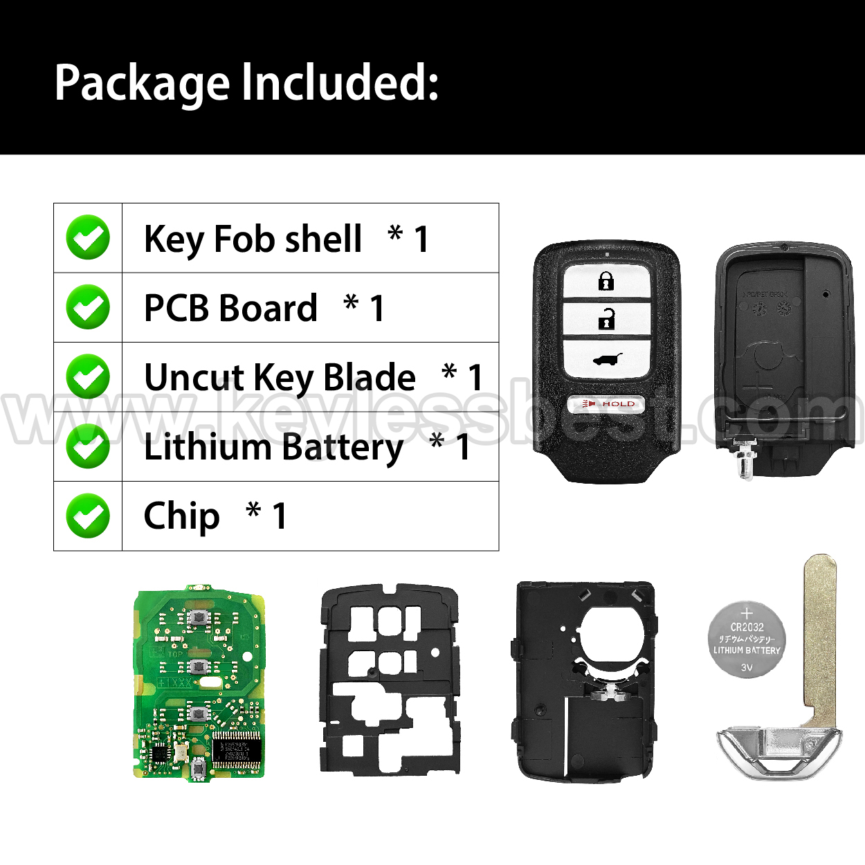 *The detailed information of this 2016-2022 Honda keyless remote fob is as follows. Please confirm the following details match your vehicle before ordering: FCC ID , Part Number , Year Model , IC , Frequency, Chip, and Buttons.