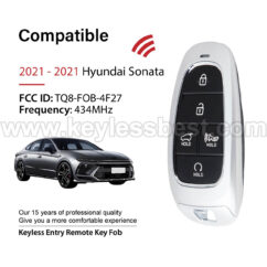 - The 2018-2021 Hyundai smart keyless entry fob replacement – without a logo, with an uncut emergency insert key included.