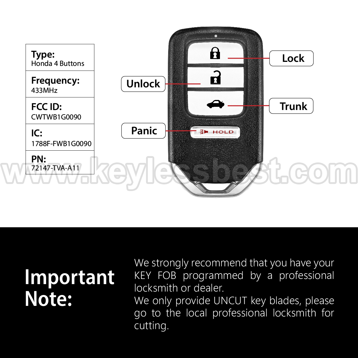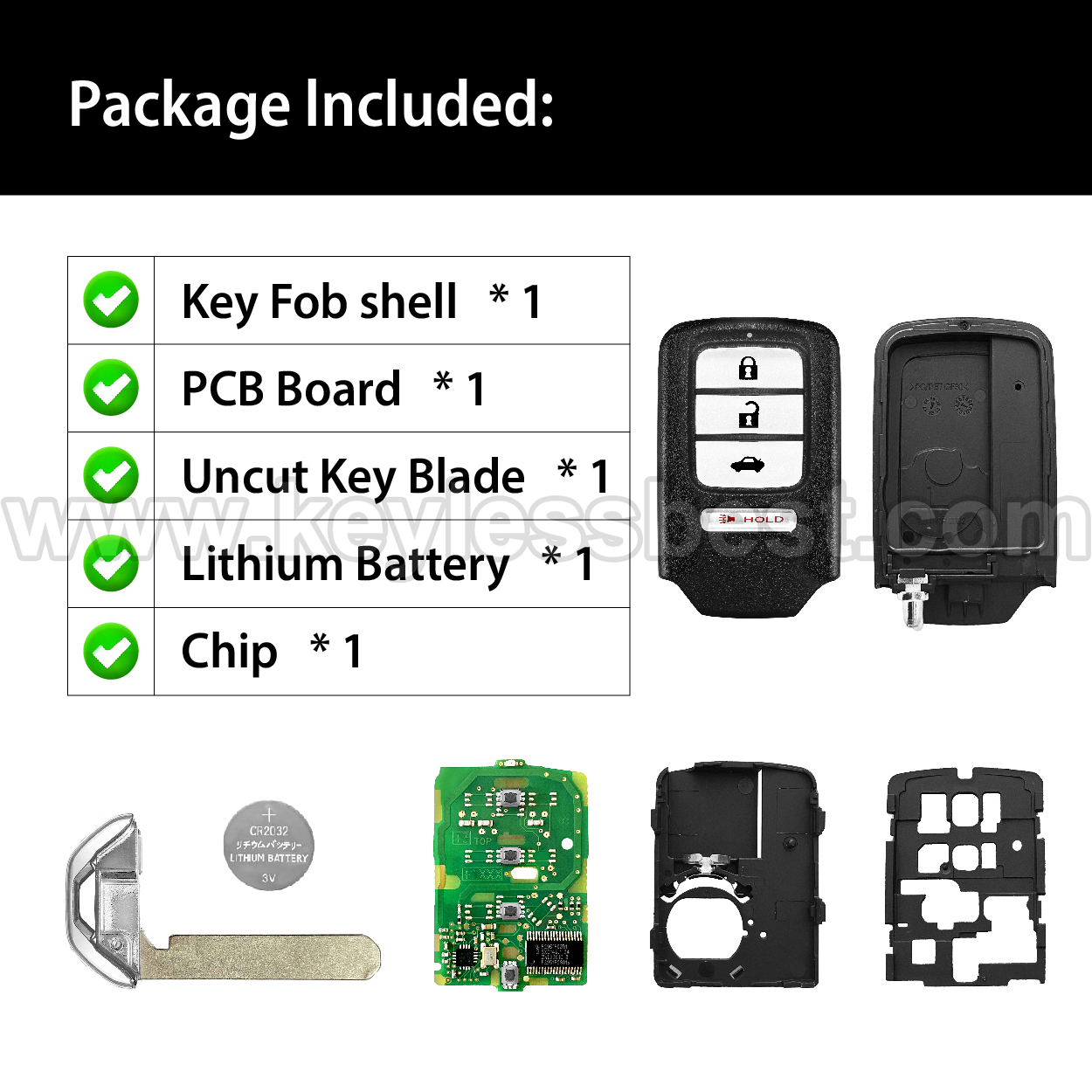 *The detailed information of this 2018-2022 Honda keyless remote fob is as follows. Please confirm the following details match your vehicle before ordering: FCC ID , Part Number , Year Model ,IC, Frequency, Chip, and Buttons.
