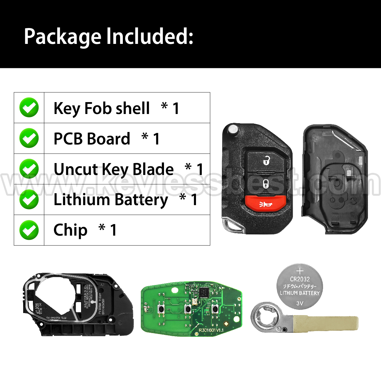 *The detailed information of this 2018-2024 Jeep keyless remote fob is as follows. Please confirm the following details match your vehicle before ordering: FCC ID , Part Number , Year Model ,IC, Frequency, Chip, and Buttons.