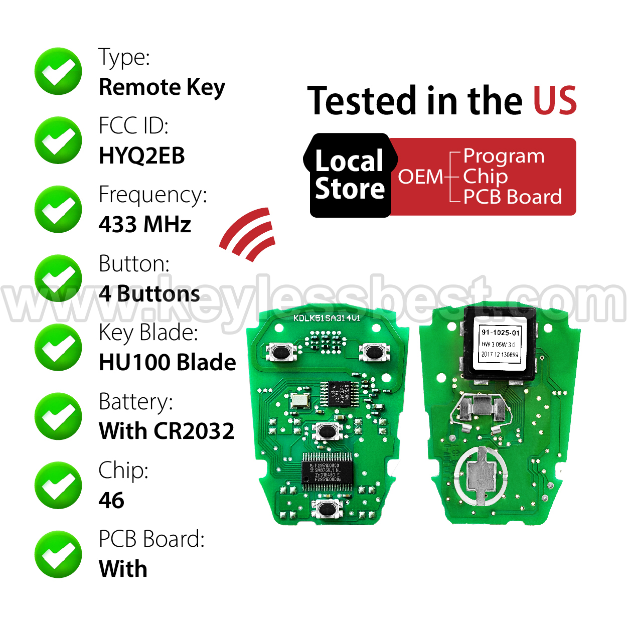 - Price is for one complete replacement keyless entry remote, emergency key included.