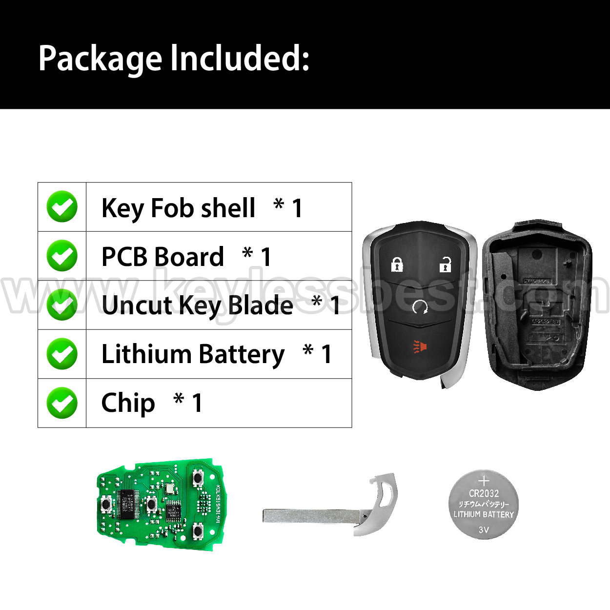 *The detailed information of this 2019-2021 Cadillac keyless remote fob is as follows. Please confirm the following details match your vehicle before ordering: FCC ID , Part Number , Year Model ,IC, Frequency, Chip, and Buttons.