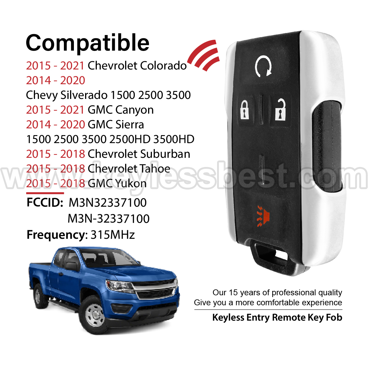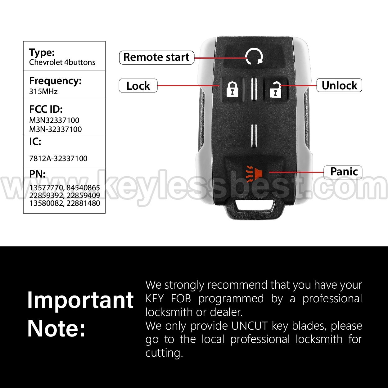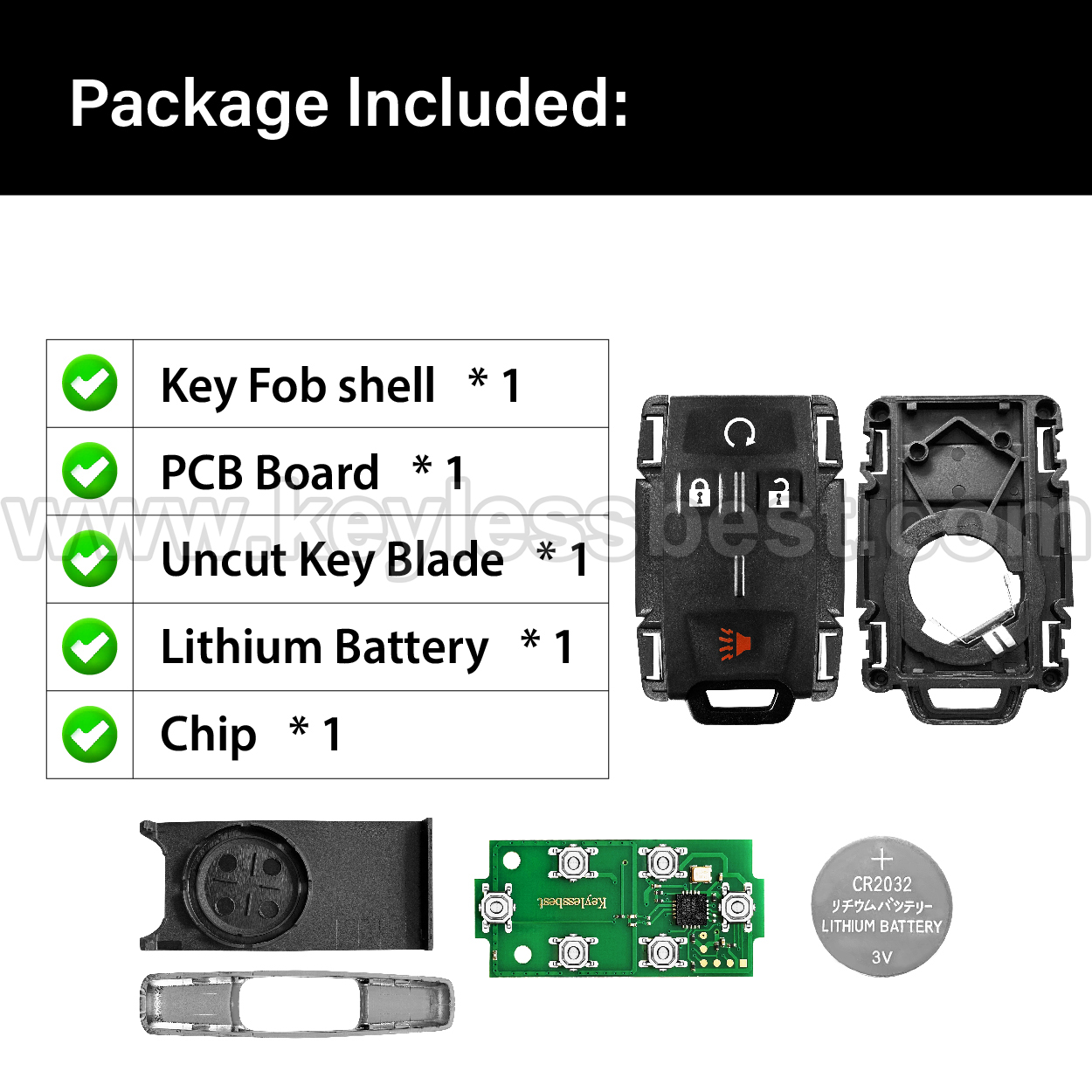*Подробная информация об этом бесключевом дистанционном пульте для Chevrolet GMC 2014-2022 годов следующая. Пожалуйста, подтвердите, что следующие данные совпадают с вашим автомобилем перед заказом: FCC ID, номер детали,  Годовая модель,IC, Частота, чип и кнопки.